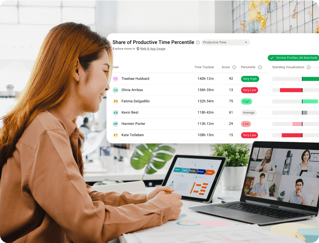 Spot which teams, roles, or workflows are outperforming peers and set them as the standard.